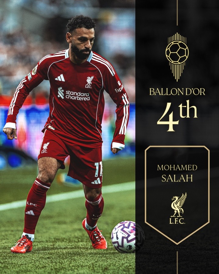 09月27日讯 2025年金球奖,萨拉赫排名第四,今日金球奖官方公布了得分明细和100名记者的投票详情。